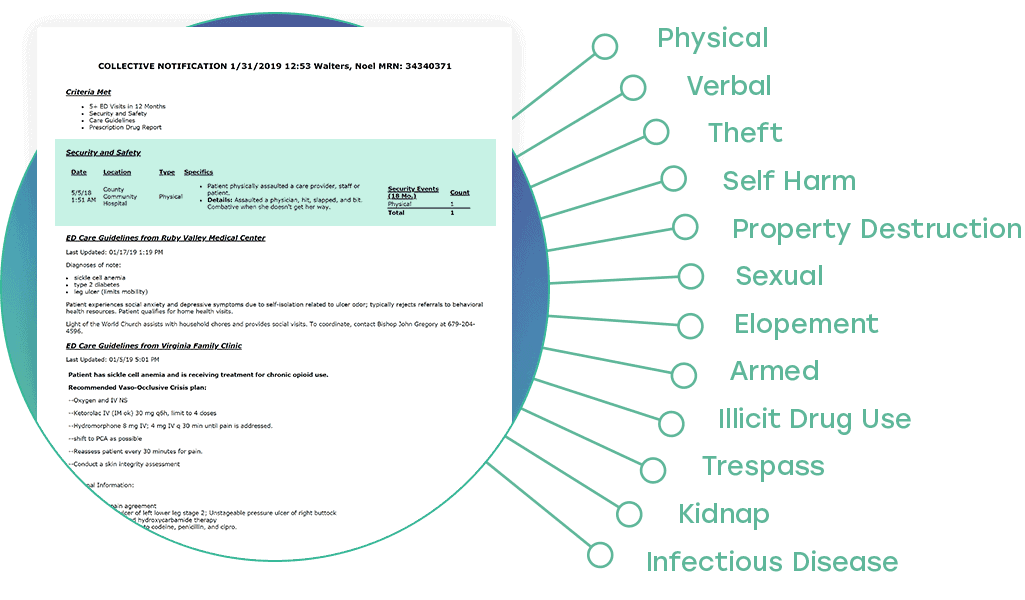 Easily identify patients who are prone to be security or safety concerns by gaining knowledge of past actions across the Collective network.